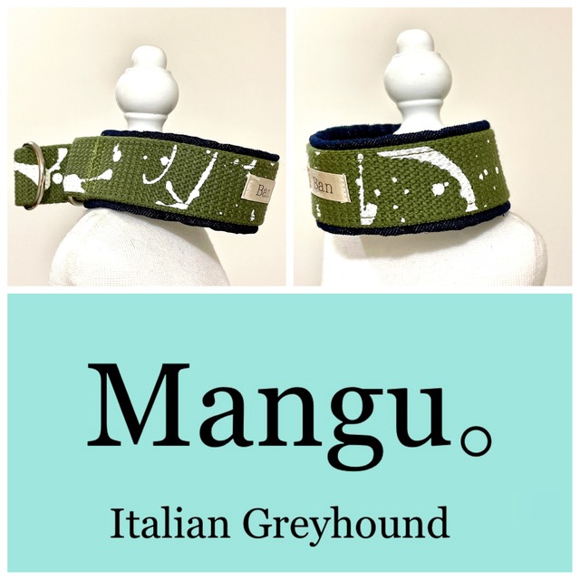※金具を強化し、シルバーに変更になりました SHOPをご覧頂きありがとうございます。 当店は全ての商品に名入れ致します。 お名前とサイズを必ずお知らせください❤︎ 迷子を無くす活動はもちろん、みなさんの愛犬を名前で呼んでもらう事で、飼い主様以外のお友達ともコミニュケーションUPを目指す、おせっかいなSHOPです❤︎ 【オーダー商品】 当店オープン前にインスタでUPした際、最も指示の熱いターコイズカラーのフリンジを使ったハーフチョーク✨ フリンジの仕入れ先に再入荷して頂いた事で、沢山お届け出来ます♪ Mangu。を代表する作品となりそう♪ 芝にスリスリ&ゴロゴロするのが好きなイタグレちゃんでも、飼い主さんの手で撫でれば簡単にお直し可能です❤︎ 安心してお使いください。 お店のコンセプト『みんなお家へ帰ろう』より、迷子犬を無くす活動から、愛犬のお名前をお付けします。 また迷子になった際に愛犬の名前と勘違いすることを防ぐ為、ハーフチョークにはショップタグはお付けしておりません。 どなたかに聞かれたら口コミしていただけると嬉しいです❤︎ 《材料》 テープ: アクリルテープ(3㎝) クッション:デニム生地(内部にクッション材) Dカン : ブラックニッケル(工具で挟んでもキズがつきにくい素材を使用) ※Dカンなので、引っ張られたとしてもテープ全体に力が分散されるので、テープの劣化を抑えられます。 ・・・・・・・・・・・・・・・・・・・・・・ 〜サイズとお名前(①〜③)を備考欄でお知らせください〜 《サイズ》 ①頭 ②首 サイズの他にお名前もお知らせください。 ※頭〜喉元の出来上がりサイズは、外す際に耳を痛めない様に、ヌードサイズより余裕を持たせたサイズとなります。 《お名前》 ③名入れいたします。 ワンちゃんのお名前をお知らせください。 (例:BAN、Ban、ban) ※ひらがな、カタカナ、漢字対応可 ・・・・・・・・・・・・・・・・・・・・・・ 《注意事項》 事故防止のため、飼い犬の目が届く範囲でご使用ください。 ハンドメイド品のため、力が強いワンちゃんや噛み癖のあるワンちゃんにはご使用をお控えください。 縫製箇所のほつれなどの消耗箇所が見られたら、事故防止のため早めに新しいものにお取り替えください。 事故におかれましては、責任を負い兼ねます。 ※購入された時点で、ご理解頂けたものと致します。 《発送について》 ◯【即納】と記載の商品は入金後5営業日に発送致します。 ◯【オーダー商品】と記載の商品は入金後7日頂きます。 ◯複数ご注文の場合、商品が全て揃い次第発送致します。 ⚠️コロナウイルスの影響により、通常よりお時間を頂戴する場合もございます。ご理解、ご了承の程宜しくお願いします。 送料全国一律300円 1つの商品につき100円を動物保護施設への支援金に変えさせて頂きます❤︎
