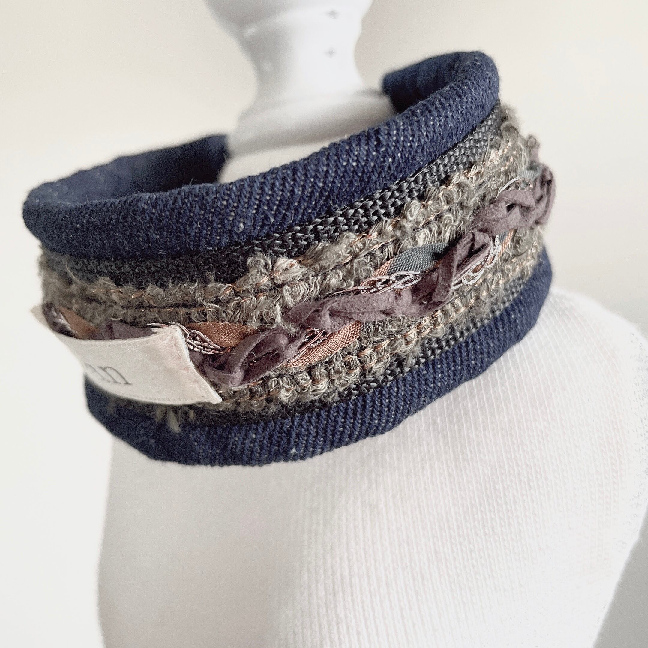 こちらは、アーミー柄のリボンを使用したハーフチョークです。