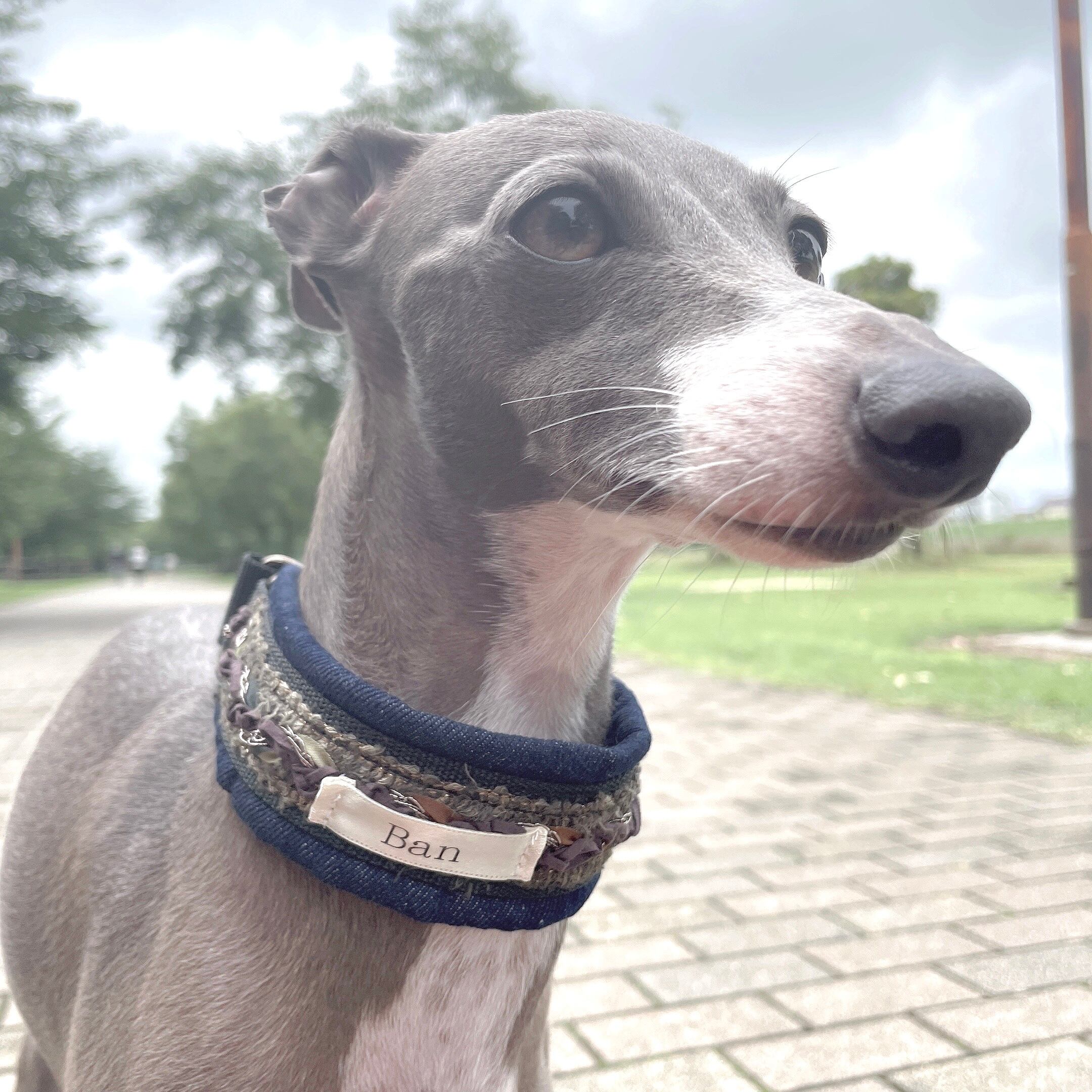 お洋服の邪魔にならないデザインのアーミー柄が、イタグレのシャープなイメージを壊さないハーフチョークに仕上がりました❤︎