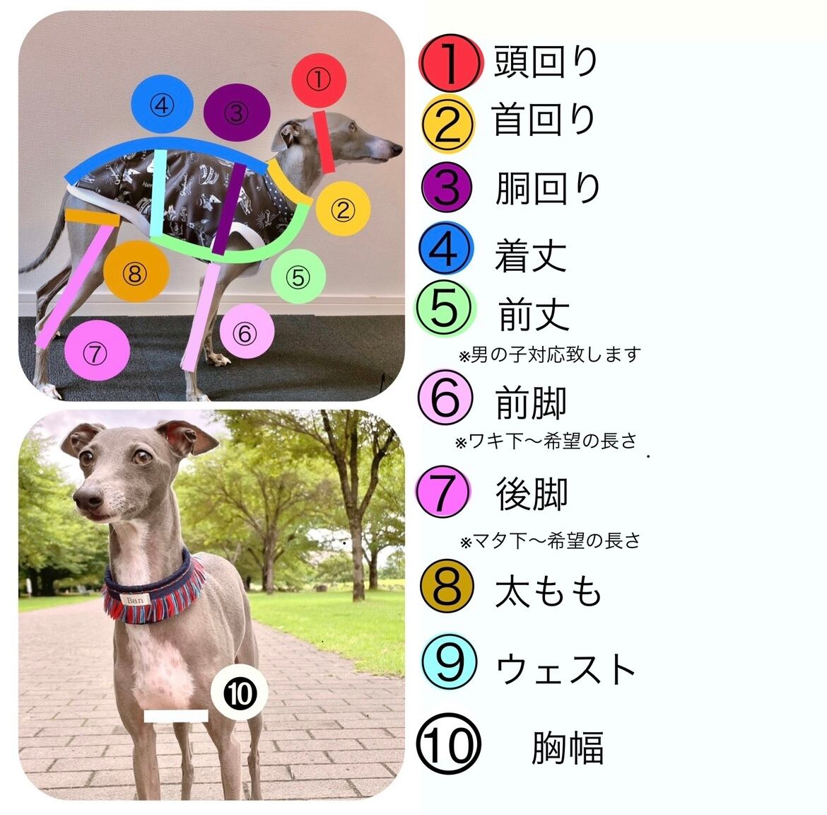 クレーム、キャンセル、返品は非対応となりますので、採寸は3回ほど測った平均をお出し頂くなど、予め飼い主様による確認をお願いいたします。