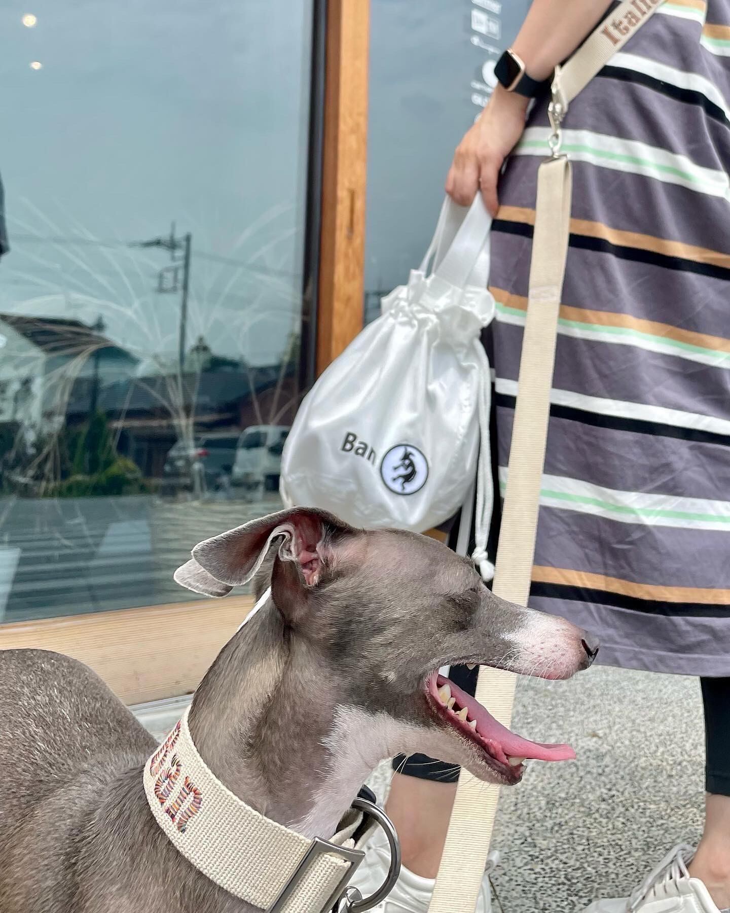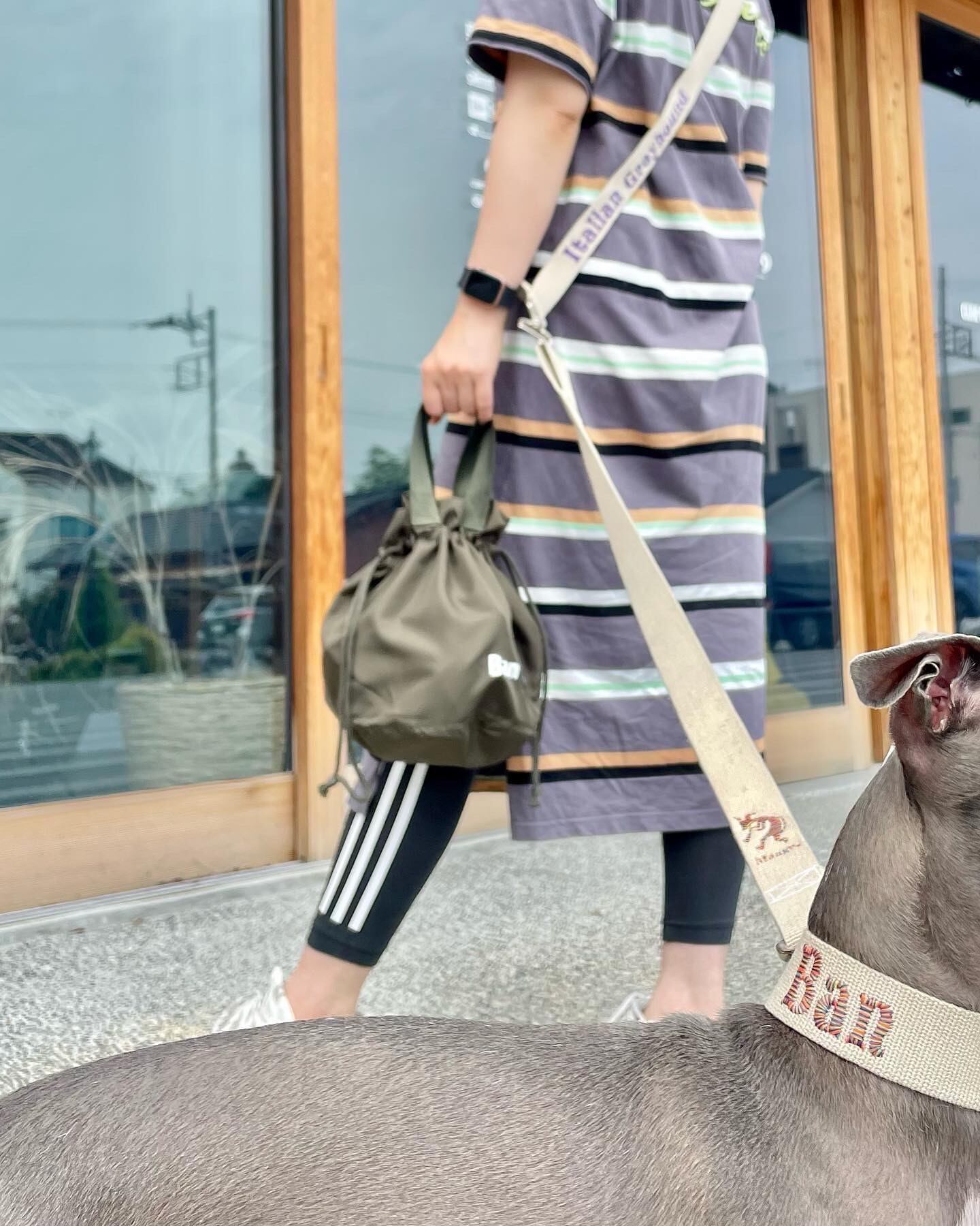 巾着型なので、ランやカフェでワンちゃんにイタズラされにくい形です。